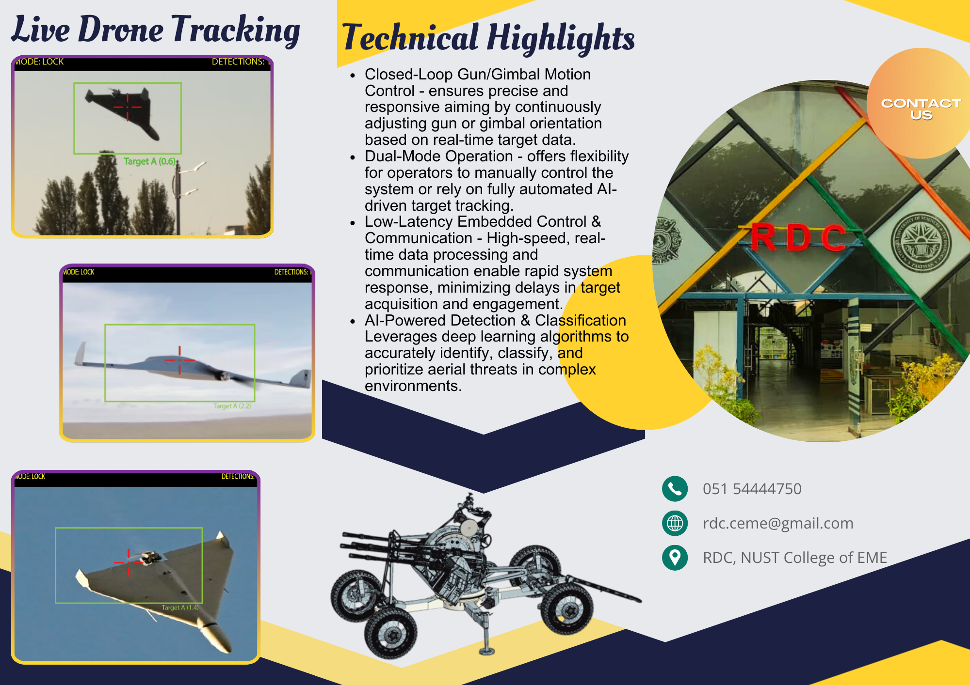 The system incorporates closed-loop gun or gimbal motion control to ensure precise and responsive aiming, continuously adjusting the weapon or sensor orientation using real-time target data. It supports dual-mode operation, allowing operators to either manually control the system or switch to fully automated, AI-driven target tracking for enhanced operational flexibility. Low-latency embedded control and communication enable high-speed, real-time data processing and rapid information exchange, minimizing delays in target acquisition and engagement. Additionally, the platform integrates AI-powered detection and classification, using deep learning algorithms to accurately identify, classify, and prioritize aerial threats even within complex and dynamic environments.